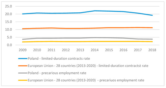 - Eurostat. 2019a. Employees with a Contract of Limited Duration (Annual Average)—tps00073. Available online: http://appsso.eurostat.ec.europa.eu/nui/show.do?dataset=tps00073andlang=en (accessed on 5 June 2020).