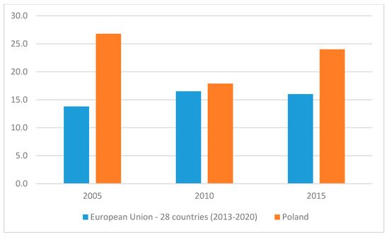 | European Union—28 countries (2013–2020) | 10.5 | 10.80 | 11.00 | 10.70 | 10.70 | 10.90 | 11.20 | 11.2 | 11.3 | 11.2 | 10.95 |