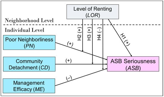 The positive relationship between poor neighborliness and ASB seriousness will be strengthened with a higher level of renting;