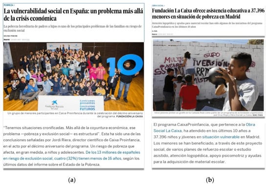 (a) Social vulnerability in Spain: a problem beyond the economic crisis. (b) La Caixa Foundation offers educative assistance to 37,396 minors in a situation of poverty in Madrid. Pieces of news presented in the activity 1.