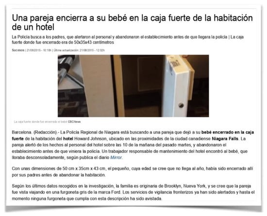 A couple locks their toddler in the safe of their hotel’s room. Piece of news presented in the activity 2.