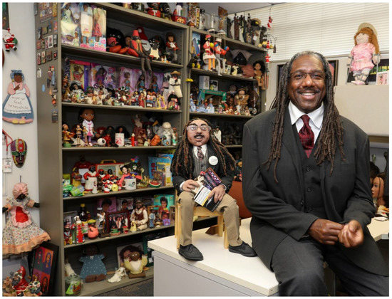 As “texts” that teach, my collection moves beyond the limitations of a physical book, which typically must be opened or technologically switched on to experience, instead engaging instantly, and not necessarily with a visitor’s permission, anyone who walks into or by my professorial office space. The artifacts tell stories that I cannot personally tell as they capture a viewer’s emotion and imagination without the viewer’s awareness or control, unlike the deliberate act of picking up, opening, and closing a book. If there is something the reader does not like, the book can be snapped shut, the rest of the book unread and ignored. In contrast, visitors to my office cannot close my door or not see what they see. They may certainly choose not to engage with me about the contents of what they see, but they cannot not see it as they are not physiologically blind or visually impaired. This collection also challenges my office visitors to confront the reality of me, an African American male faculty member at yet another predominantly white institution, inviting—even forcing—an interiority or open conversation about US and even global constructions of race on my terms. In this sense, my “colored museum” invites, coaxes, and seduces all who experience it—my students, office staff team, and university colleagues, especially—to reflect on how they see me in this space and how we collectively and individually experience community building and new meaning making. My “colored museum” curates intersectional identities and begs continual reflection on the perennial question W.E.B. Du Bois (1903) poses in The Souls of Black Folk forty years after Emancipation: How do we measure progress? More importantly, though, my collection reveals a lot about me as an entrepreneurial humanist using every trick up my proverbial sleeve to teach and learn. My collecting story and teaching-learning purpose echoes that of Pilgrim (2015), who explains: “I am a garbage collector—racist garbage… I collect this garbage because I believe, and know to be true, that items of intolerance can be used to teach tolerance and promote social justice” (p. 1). Though in different places geographically, Pilgrim and I are walking side by side in this justice journey.