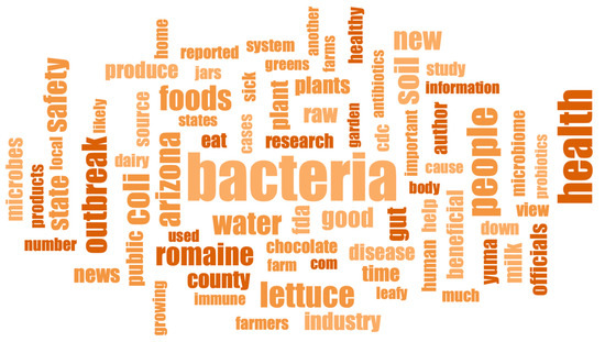 The word cloud highlights the significance that the romaine lettuce outbreak had on the news cycle. Microbial life’s negative impacts are at the heart of the food safety lexicon, with just a few terms such as beneficial and good appearing primarily to illustrate the importance of soil microbes. This overall negativity overlooks the role many microbes such as lactobacilli play in keeping foods safe. This language carries consequences. It is reflected in the reactions of the leafy green industry in California and Arizona, where strong regulatory structures have been put in place through the Leafy Greens Marketing Agreement (Baur 2016), which requires preventative measures to ensure the safety of these greens. As these regulatory structures are implementable at scale, however, they target safety measures used by big industrial players rather than by small-scale and traditional food producers. A small subset of scholars has recently argued that food safety should be tailored to different scales and made adaptable to other modes of production (Hassanein 2011), but such ideas have not yet gained widespread traction. Issues of food safety continue to follow what Baur (2016) calls a “patchwork with big holes”. We see the language in the informal food safety lexicon as one of those big holes, missing the voices of different human and microbial players who do not easily travel already-present regulatory or technological pathways.