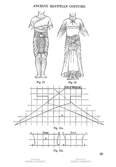 Technical costume manual depicting ancient Egyptian belts with appendages. From (Houston and Hornblower 1920, p. 39). (Courtesy of HathiTrust).
