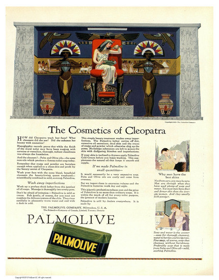 - The Cosmetics of Cleopatra (Palmolive Co.). 1920. Harper’s Bazaar 55: 112a.