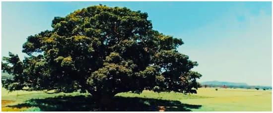 As the music transitions from the first melody to the next, Jambo Jote mentions a proposal for a meeting—the protagonist tells his wife to meet him at ‘this year’s Irreecha ceremony of Hora-arsadi’. As noted above, Hora-arsadi is a sacred site where people collectively ask for forgiveness from the Creator, but it also resonates with the Oromo culture of peacemaking. While the singer verbally articulates the lyrics about this ‘planned date’, the video visualizes Hora-arsadi and evergreen sycamore trees (Odaa) to conjure images and imaginations of places where Oromo traditional Council (gada) meet to mediate conflicts as well as discuss concerns regarding the welfare of the community they are elected to serve. The shade of Odaa tree is where Oromo basic laws (seera) are enforced—grievances heard, wrongdoings corrected, and decisions given—‘all out in the open’. The Odda tree is also a symbol of democracy and of Oromo people’s aspiration for political freedom (Figure 7).