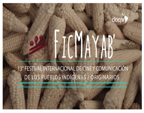 CLACPI evolved to become a conglomerate of Indigenous-lead organizations from Bolivia, Chile, Argentina, Colombia, Cuba, Ecuador, Guatemala, Mexico, Peru, Venezuela, Nicaragua, and Brazil, and also from Catalunya and Romani Peoples, and Canadian First Nations. It also organizes the International Festival of Indigenous and First Peoples Cinematography and Communication (FICMAYAB) (Figure 2), which in 2017 hosted itinerant screenings of such works in schools, communities, and municipalities in Mexico, Guatemala, Honduras, Venezuela, Europe, and North America, expanding in 2018 to Panama to include the participation of the Abya Yala Indigenous Peoples from Panama and the Caribbean. Since 1985, CLACPI has organized Indigenous Film + Video Festivals about every two years. What makes this festival very special is that it is itinerant and international. Previous festivals include: México (1985 and 2006), Brazil (1987), Venezuela (1990), Peru (1992), Bolivia (1996 and 2008), Guatemala (1999), Wallmapu Chile (2004), Ecuador (2010), and Colombia (2012). The festival hosts a gathering of journalists and media producers to consult among one another on media actions and strategies. CLACPI represents a special case from Latin America that highlights the community-based aspect of Indigenous media representation promoted within living spaces for participation in the same communities.