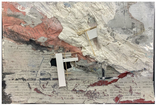 In a cross-campus teaching workshop on Experiential Learning in the Architecture Design Studio, we learned that we assign some of the same poets to build our respective syllabi for Design Studio (Charlie) and Modern American Poetry (Marsha). Charlie moderated the workshop’s panel of faculty from the University of Florida’s School of Architecture, orienting attendees to studio curriculum and pedagogy. We assembled in the School’s teaching gallery, surrounded by students’ drawings and models for their design projects (Figure 1). Many of these iterations struck Marsha as modernist poems in the making. Some of the student work incorporated words in their mixed materials, creating collage effects (Figure 2). Workshop panelists noted that poems, films, and songs can generate architectural designs.