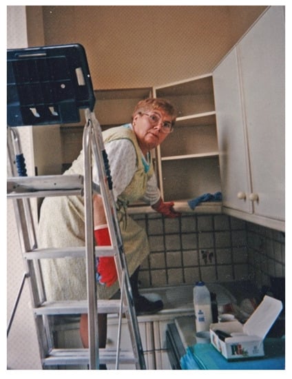 Virtudes working, with cleaning products, and tea PG. Virtudes (e misterioso) Xesús (). Reprinted with permission from Xesús (). Copyright 2020 Copyright Owner’s Xesús Fraga.