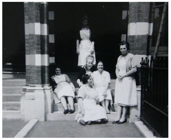 Virtudes and other workers at the nurses’ home at Bramham Gardens. Virtudes (e misterioso) Xesús (). Reprinted with permission from Xesús (). Copyright 2020 Copyright Owner’s Xesús Fraga.