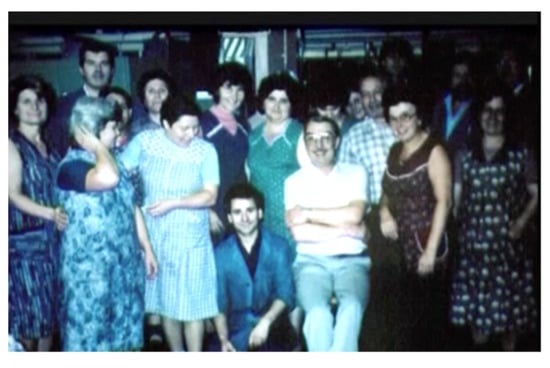 In the case of Fraga, Figure 3 and Figure 4 are illustrative. In the case of Ruido, Figure 5 and Figure 6, the family photos of the emigrant couple with their children are interspersed with images of the world of work in the factory, whether current or from the past, in which the presence of working women is evident.