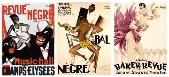 - Walery. 1927. Josephine Baker in a banana skirt from the Folies Bergère production “Un Vent de Folie”. Wikimedia Commons. Available online: https://commons.wikimedia.org/w/index.php?title=File:Baker_Banana.jpg&oldid=471910353 (accessed on 1 March 2021).