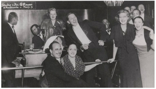 - Ada “Bricktop” Smith, owner, and others at Bricktop’s club Rue Pagalle, Paris. 1932. The New York Public Library. The New York Public Library Digital Collections. Available online: https://digitalcollections.nypl.org/items/6a352fe2-7ff9-8a42-e040-e00a18067cb6 (accessed on 1 March 2021).