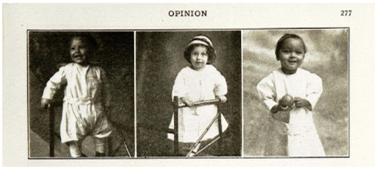 Robin Bernstein (2011) demonstrates that the color line was as pronounced for children as for adults, although with slightly different effects. Bernstein’s work provides an insightful history of the racialization of childhood, a history that can be traced through a genealogy of the idea of childhood innocence, an ideological formulation refused to African American children. Bernstein writes that “[t]he connection between childhood and innocence is not essential but instead historically located” (p. 4) Innocence as the essentialized quality of childhood stems from “late eighteenth and early nineteenth century” racial ideologies that cohere in and through “sentimental culture” (ibid.) Most emblematic of this sentimental vision of childhood innocence is Little Eva of Uncle Tom’s Cabin, who epitomizes the construction of innocent children as “sinless, absent of sexual feelings, and oblivious to worldly concerns” (ibid.). “This innocence,” Bernstein asserts, “was raced white” (ibid.). Indeed, the Children’s Numbers of The Crisis document the multiple ways in which Black children’s innocence is, from birth, threatened by the inevitable imposition of “worldly concerns,” namely the realities of systemic racial inequity, economic stratification, and racist violence. Phillips (2013) points to several examples from the Children’s Numbers in which “the juxtaposition of the romantic child image to the textual violence of the Crisis’s reports” conjures the racist dangers that will inevitably confront these children, “insist[ing] that childhood is not exempt from race prejudice and should not be excluded from race consciousness” (p. 594).