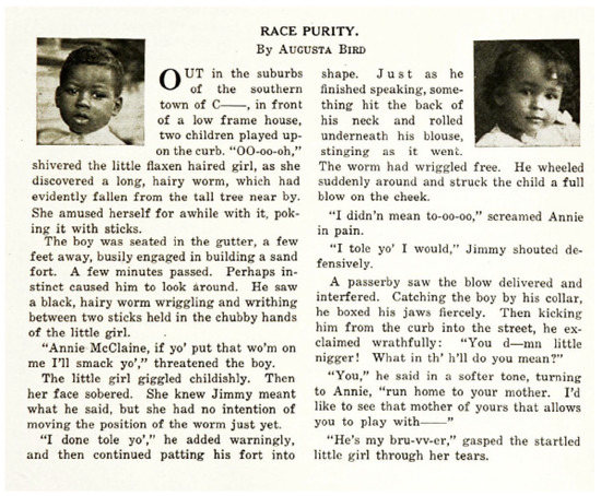 - Bird, Augusta. 1918. Race Purity. The Crisis 16: 275. Available online: https://modjourn.org/issue/bdr511495/ (accessed on 17 January 2022).