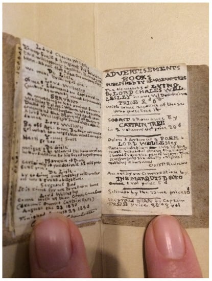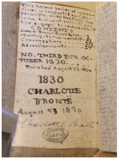 - Brontë Blog. 2009. Charlotte Brontë’s Hobby. The Brontë Blog (Blog). May 26. Available online: https://Brontëblog.blogspot.com/2009/08/charlotte-Brontës-hobby.html (accessed on 5 June 2022).