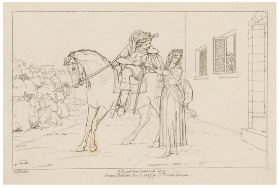Figure 2. Howard, Image 7, described as “Diana, by Helena’s instruction, obtaining the ring from Bertram” (v. 3, vi). Available online: https://www.jstor.org/stable/community.25244846 (accessed on 18 September 2022).
