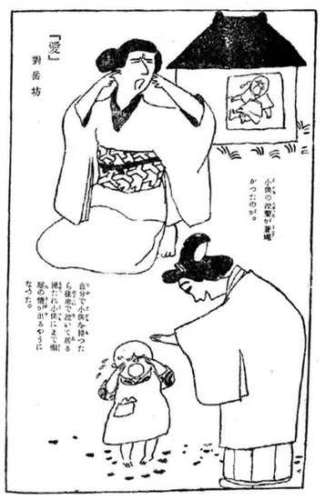 In fact, even in contemporary newspapers, encouraging children to say “papa-san” and “mama-san” was fashionable, and there were even contributed articles that considered it strange, for example, in the article “Papa and Mama” (“Papa to mama”) in the morning edition of Yomiuri Shinbun on 7 September 1922 (Yomiuri 1922). In the same issue of Josei in which “Okāsan” appears, in the story “Difficulty Reading Lips”/”Dokushin’nan” by Sasaki Mosaku, even the protagonist uses the trendier word when he asks a child, “Hello, where’s your mama?”(Sasaki 1926). A little later, in 1934, the Minister of Education Matsuda Genji called for the use of titles such as “mother” and “father” rather than “papa” and “mama”, which stirred up a debate (Yomiuri 1934). While the usage of “mother” and “father” were originally middle-class households in Tokyo, it became standardized in 1904 with the Jinjō shōgaku yomihon, a national language textbook for elementary schools (Shimizu 1987). Considering its rapid spread and establishment, the endorsement and feeling of “nostalgia” that “I” feels for “mother”, at a glance, can be seen as an expression of nationalist consciousness. However, “I” continues as follows after the previously quoted section: