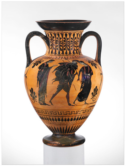 Aeneas carrying his father, Anchises. Attic black-figure amphora, last quarter of the 6th century BCE. The Metropolitan Museum of Art, New York, USA. Accession Number: 41.162.171. (Open Access–Public Domain (The Met) https://www.metmuseum.org/art/collection/search/254342 accessed date: 2 January 2023).