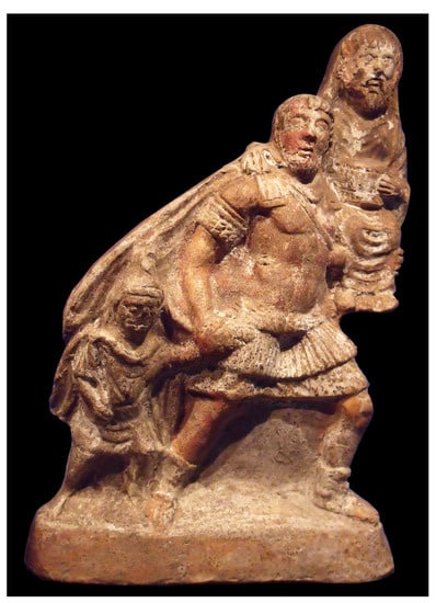 Aeneas carrying his father, Anchises, and his son, Ascanius. Terracotta figurine from Pompeii, 1st century CE. National Archaeological Museum, Naples, Italy. Accession Number: Inv. 110338. Photo Source: Alphanidon. (Creative Commons Licence: CC BY-SA 3.0. https://upload.wikimedia.org/wikipedia/commons/2/2a/Terracotta_Aeneas_MAN_Naples_110338.jpg accessed date: 2 January 2023).