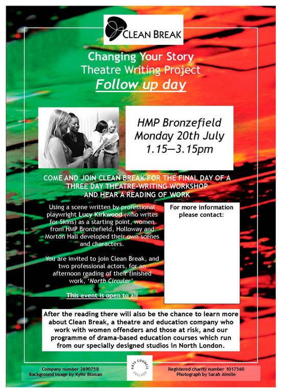 This research was developed through the UKRI Arts and Humanities Research Council-funded research project ‘Clean Break: Women, Theatre, Organisation and the Criminal Justice System’ (AHRC/S011951).