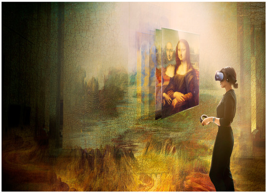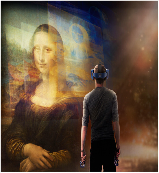 https://www.louvre.fr/en, accessed on 25 June 2023) and accessed via the smartphone app VIVEPORT. This means that people do not have to visit Paris or the museum to ‘see’ the painting; they can be in a different location/country entirely, as the website states ‘the Mona Lisa in virtual reality in your own home’ (