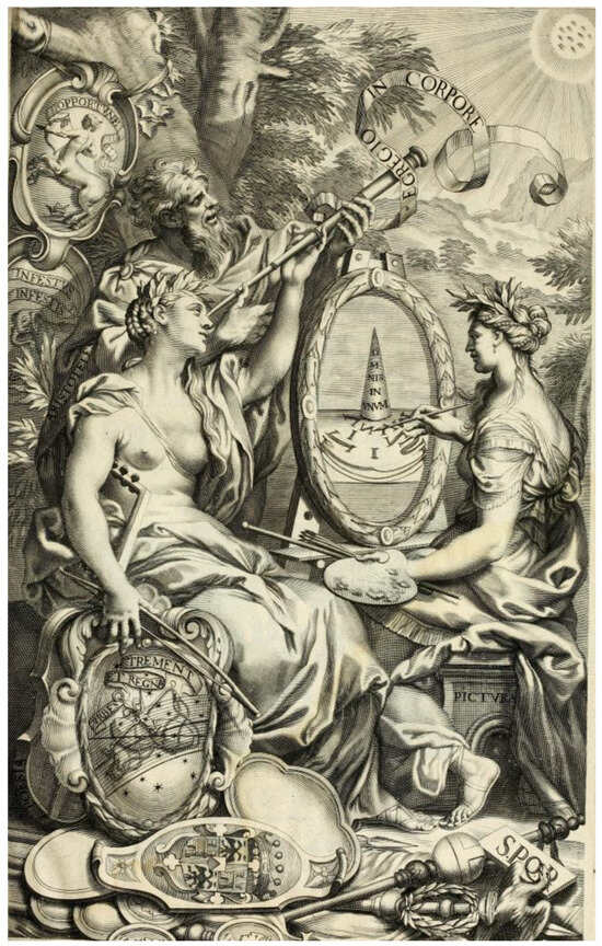 Il cannocchiale opens with an anti-porta (Figure 1) that, as an emblema of the entire book, summarizes in allegorical terms its content and meaning. Two almost identical women are seated across from one another. On the left is the art of poetry (Poesia), while on the right we find the art of painting (Pictura). Poesia is assisted by an old man, Aristotle, who holds up a spyglass before her eyes—a metaphor for his Rhetoric—so she can look at the sunspots on the top-right corner of the emblem. The title of the Il cannocchiale—The Spyglass of Aristotle—is a metaphor and an oxymoron at the same time. The invention of the spyglass, the instrument Galilei pointed towards the sky for the first time and, since then, the symbol of the scientific revolution, is attributed to Aristotle, the figure who (according to the new science) built a false representation of the world that was believed for centuries, and against which Galilei fought. In Tesauro’s rhetorical twist, the “cannocchiale” becomes “aristotelico” and now stands for the ancient art of rhetoric. If Galilei’s spyglass allows us to see the sunspots, Aristotle’s (metaphorical) spyglass allows us to find the perfections and imperfections of any rhetorical product. The figurative meaning of this instrument is made clear in chapter one when Tesauro declares that he is going to analyze the source of wit (argutezza) and the structure and workings of the arts that exploit it by words and images. His guide will be the “divine Aristotle,” called in the treatise the author (l’Autore), implying two meanings: author of the main reference (his Art of Rhetoric) and the main auctoritas as a reliable source of knowledge. His rhetorical spyglass will reveal all the perfections and imperfections of eloquence: “The divine Aristotle, who every rhetorical secret minutely searched and taught to those who attentively listen to him. Such that we may call his rhetorics a most limpid spyglass to examine all the perfections and imperfections of Eloquence. Speaking therefore of the whole Rhetorical Art, which many denied could be taught to us except by mother nature alone, he said: one can surely find this art, if he considers different compositions, of which, either by chance or by industry, some are good and others evil, and knows with his intellect how to subtly investigate the reasons why these are good and those defective: some provoke nausea and others applause”.9