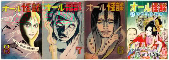 As a result of the circulation of these two magazines, a growing interest in supernatural-related topics developed, inspired in part not only by the Japanese literary tradition (kaidanbanashi, ghost stories) but also by classical Japanese art (woodcut prints with a ghosts and legend theme). The great merit of these two magazines was that they created a format that would later be taken up as a model for the creation of further emulators. Between 1959 and 1960, in fact, many other similar magazines were born that shared a similar basic layout with Kaidan and Ōru kaidan. These magazines, which are often unavailable today, achieve significant numbers in the comic collector’s market, with volumes reaching prices ranging from 5000 to 50,000 yen.