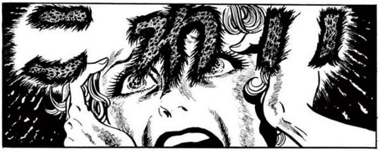 The fear that arises, on the other hand, from Umezu Kazuo’s manga is of quite a different nature. Umezu has always sought to “scare” his readers, both male and female, with disturbing stories and images, certainly unusual considering the magazines and the target audience. In an essay of his entitled Kyōfu e no shōtai (恐怖への招待, Invitation to Terror, 1988; ed. consulted 1996), Umezu analyzes some aspects of horror comics, identifying recurring iconographic and narratological themes. For the sake of analysis, it was decided to select only two of the aspects that are most relevant to the purposes of this research and that seem to be shared by many horror manga:
