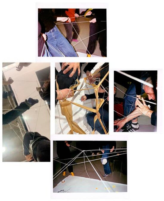 As in Lygia Clark’s Estruturas Vivas propositions, where the materials (elastic bands) have a relational function, here, the string enabled us to access the dynamic of the collective body. It was more than a metaphor for something that already existed; it also became a tool to access the entangled ways of being in relation together. Other tools that would/do facilitate our working together, such as writing, discussions, or presentations, for example, bring with them a different weight of institutional framing. The string, in this instance, binds us as an entity and cuts through the hegemonic conditions of more traditional academic practices (Figure 1).