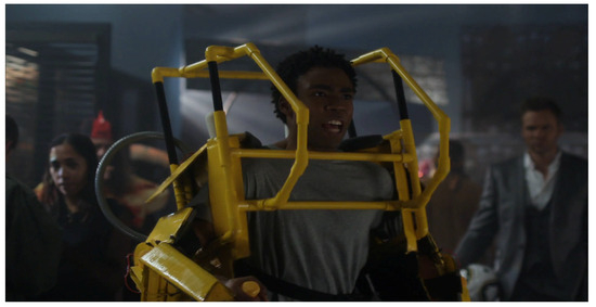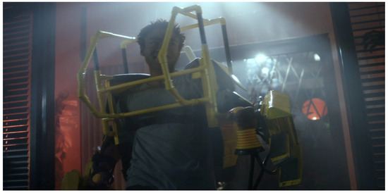 Troy’s introduction in “Epidemiology” seems unassuming, yet it suggests the symbolic journey he travels throughout the episode. Troy’s best friend and constant companion, Abed, pretends to attack several girls while costumed as the Xenomorph from the sci-fi franchise Alien. Troy wears a low-budget version of the yellow power loader suit Ripley (Sigourney Weaver) uses to defeat the Xenomorph (Figure 2). After Troy successfully defeats his enemy, he says to the two girls, “You’re safe now, but if that thing comes back, I’m gonna need one or both of your phone numbers” (Dornetto and Hemmingway 2010, 00:03:04–00:03:09). Clearly, he and Abed staged this scene to impress the girls, but they are not impressed.