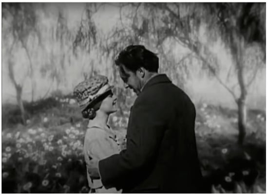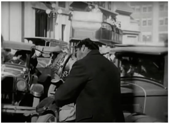 Sexual relationships, which are the most primal form of all social relationships, can be seen as an allegory for social metabolism in the film. Murnau has created a famous scene in Sunrise in which the reconciled peasant couple, once again deeply in love, stroll through the city streets, oblivious to their surroundings. Suddenly, the background magically transforms from the cityscape to the countryside, enveloping them in scenic nature as they passionately kiss. However, the background soon shifts back to the bustling city, with vehicles honking at them for obstructing traffic [Figure 1 and Figure 2]. This scene, probably created by the double exposure technology, is quite avant-garde for its time and conveys an ecological message: the feeling of love can only flourish through micro-interactions with nature, that is, by returning to the processes of natural and social metabolisms.
