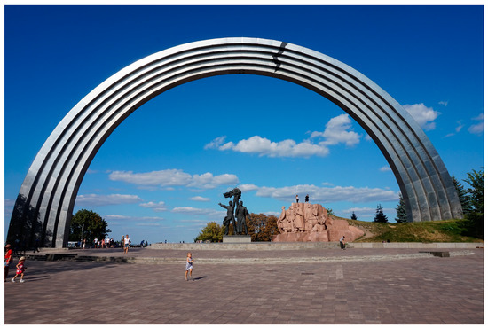 The artist gave the monument a new interpretation while preserving its historical integrity (Figure 5). In May 2022, while Ukrainians were fighting to repel the Russian invasion in the East and the capital was still being attacked, the Kyiv City Council decided to let the arch stand and to rename it the “Arch of Freedom of the Ukrainian People” (Moliar 2023).