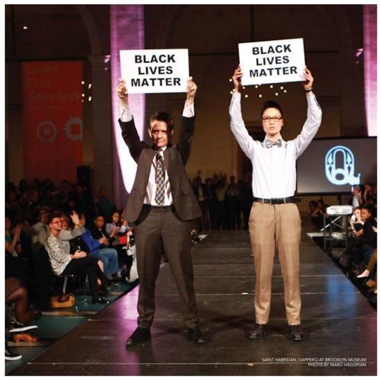 - Vita, Anita Dolce. 2014. DapperQ Masculine Gender Queer Fashion Show at Brooklyn Museum. DapperQ. December 10. Available online: http://www.dapperq.com/2014/12/dapperq-masculine-gender-queer-fashion-show-brooklyn-museum-models-carried-blacklivesmatter-signs-ended-hundreds-handsup-protest/ (accessed on 2 April 2016).