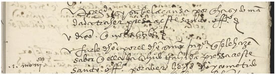 On 16 April 1550, after identifying the names, locations, and lineage of her grandparents, parents, and children, Inquisitor Valtdano asks Mayor if she knows the cause of her arrest and she responds succinctly: “preg[unta]da sy sabe la causa por q[ue] ha sido ma[n]dada a traher presa a este santo officio dixo q[ue] no lo sabe” (Figure 1. 5r).5 This brief exchange is a standard opening question from the Inquisition in which they ask open-endedly for the confessant to identify the reason for their imprisonment. In this instance, Mayor responds with a guarded denial, opting to withhold any potentially self-incriminating evidence. Her denial launches the three moniciones, three opportunities to confess fully before the charges are revealed. Confessions given in this state of ignorance are ostensibly treated as more genuine and meriting greater mercy.