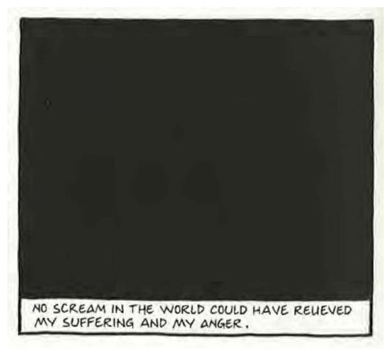 The black panel is about representation impossibility in the comics world (Satrapi 2004, p. 142). It is the panel of death, one that closure cannot or will not fill.