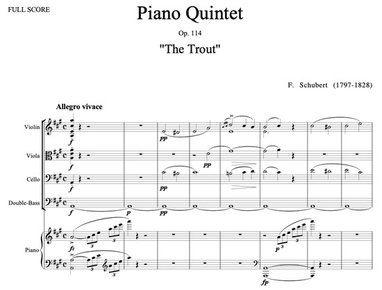 First movement of Franz Schubert’s Piano Quintet D 667 also known as “The Trout” or “Forellenquintett” (post. Op. 114) in A major (Source: Schubert [1829] 1982).