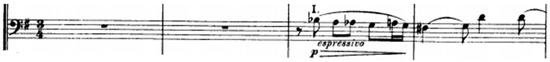 Harold in Italy, Movement 1, bb.1–4, lower strings.