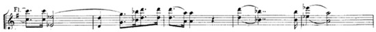 The dotted rhythm melody in the woodwind overlaps with the sinister semiquavers of the first Adagio, while the use of the tritone in b.19 suggests diabolical connotations. This A07/b5 chord, functioning as a half-diminished Cm6 (see Figure 3), indexically highlights the sinister undertones of heroism. Fanfares in E-flat, C minor, and A-flat major in woodwind (see Figure 4) alternate with relaxed triplet monotones in G minor, combining traditional heroism with Romantic irony.