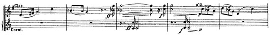 Movement 1, bb.20–24, clarinets, horns I-II (top to bottom).