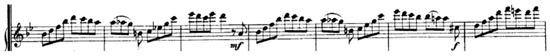 The abrupt dynamic contrasts in bb.23b–24, from very intensely loud (ff, or fortissimo) to softness (p, or piano), mock the heroic fanfare and return to G minor, reinforcing anti- heroism. The repetitive restarts of the fugato iconically signify Harold’s inability to move on, paralleling the narrative incoherence of Childe Harold. The Sehnsucht topic, or wistful longing, permeates the movement through remote tonalities, nostalgic allusions, the miniature, folkloric textures, and the exotic (Stewart 1984, pp. 139–41). In HII, the musical mountains become an index of Romantic longing for transcendence, echoing CHP.