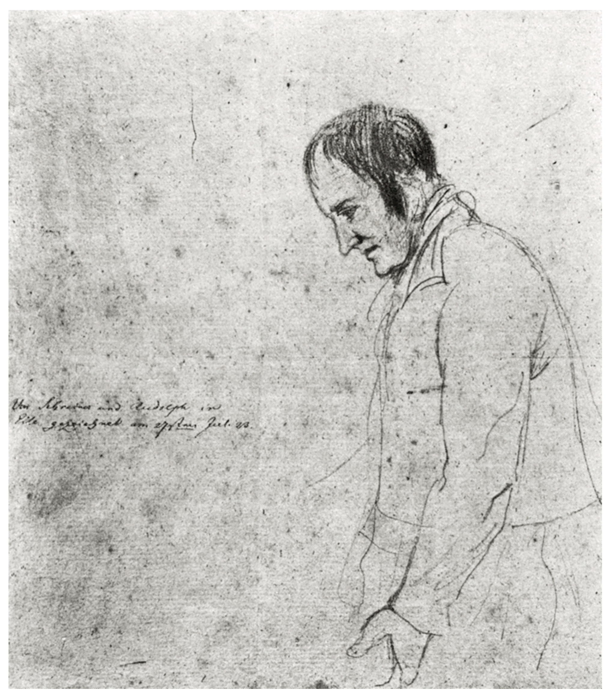 Was mir hauptsächlich auffiel, war, daß man ihn mit Blicken gar nicht recht fassen konnte, weil sein Auge gar keinen fixen Stern hat, wie es auch seiner Seele ganz an Sammlung und Concentration fehlt.43