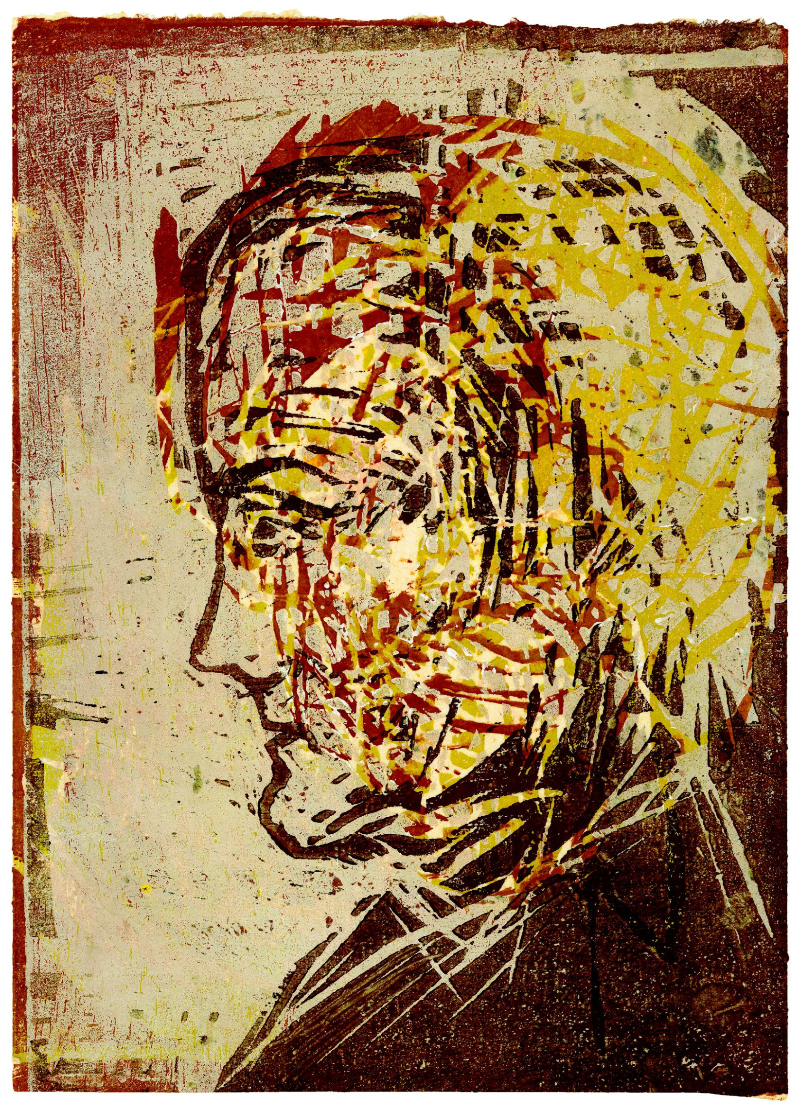 - 5 Peter Brandes: FH (Friedrich Hölderlin). Woodcut, 2009. (To Figure 1) H. 27.7 × W. 20 cm. Original: Courtesy Galerie Moderne, Silkeborg.