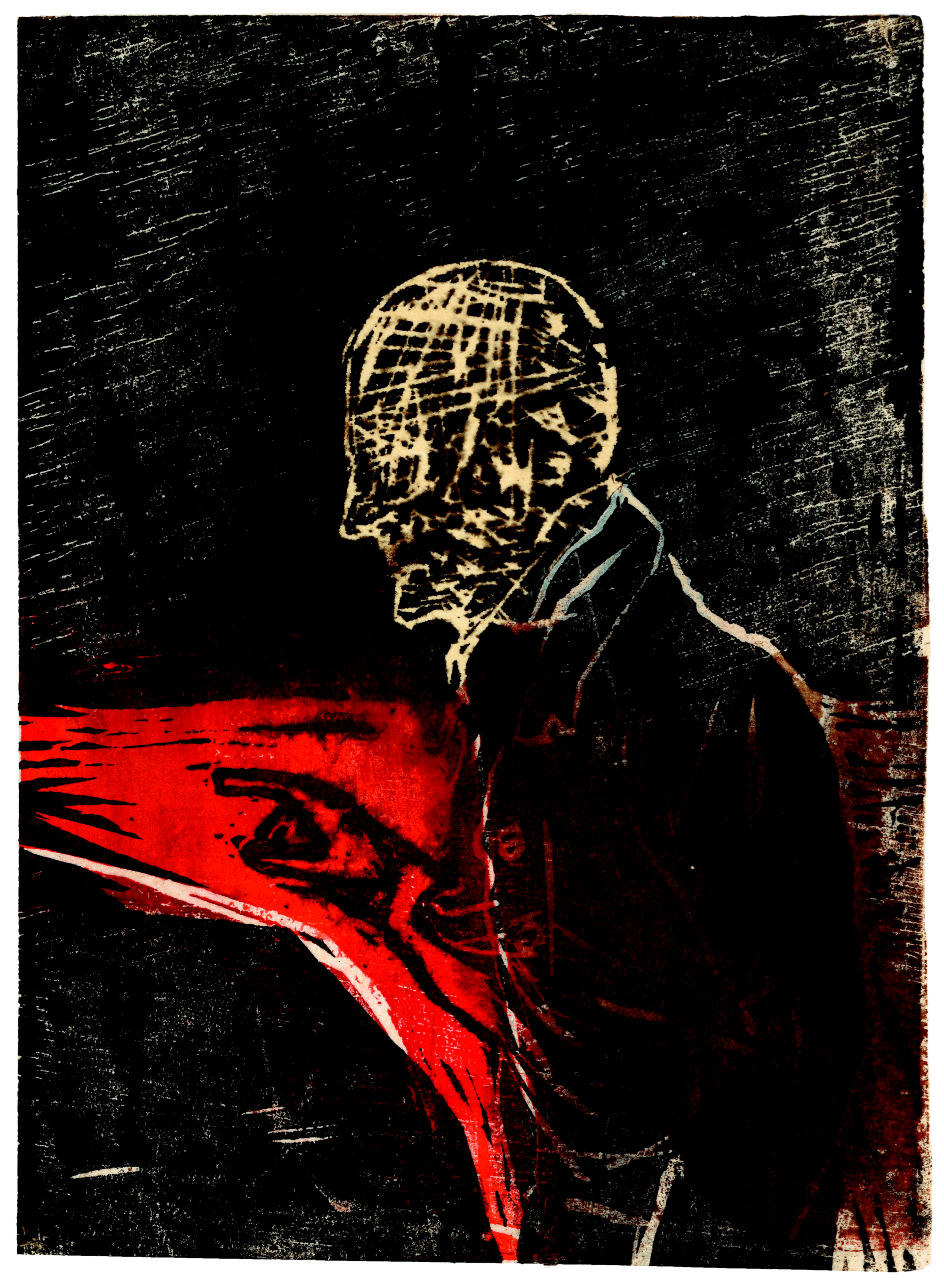 - 6 Peter Brandes: FH. Woodcut, 2009. (To Figure 3) H. 27.7 × W. 20 cm. Original: Courtesy Galerie Moderne, Silkeborg.