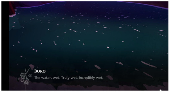 The repetitive activities of a cozy game often feel mundane or even, as Alharthi et al. (2018) have argued, boring. Players are habituated to performing the same activities over and over, and the repetition can be either soothing, mind-numbing, or both. But in Wanderstop, the player is defamiliarized by the uncomfortable confrontation with coziness, resulting in the sense of presence Shklovsky describes as the purpose of art. As Boro says, as though quoting Shklovsky directly, “this makes the rocks, more rock-ish. The water, wet. Truly wet. Incredibly wet” (Figure 3 and Figure 4).
