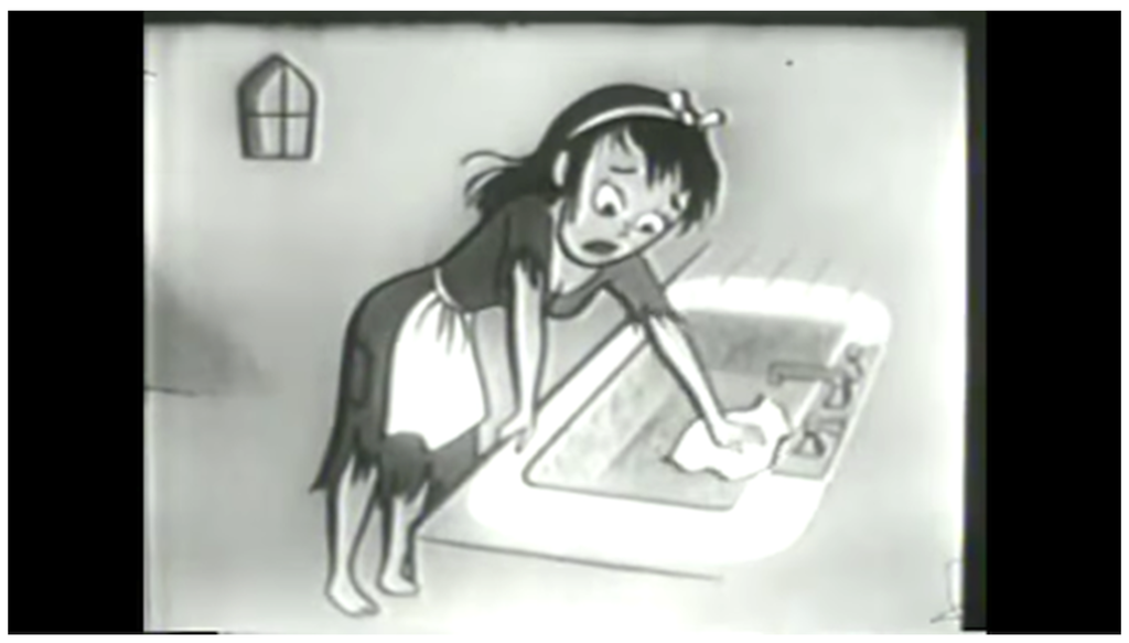 This Bab-O Cleaner commercial is a textbook example of the 1950s television commercial. But even more interesting (for the purposes of this paper, anyway) is that this commercial acted as a primer for the series of Bab-O spots that would follow it—a series that featured figures from history and fairy tales interacting with the product. Below we see how Cinderella meshes with the 50s-era TV commercial style. (See Figure 2)