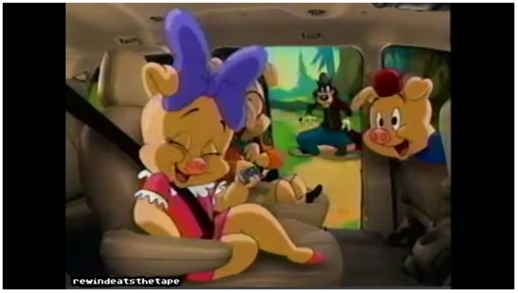 In Marina Warner’s short history of the fairy tale, “Once Upon a Time”, she posits that one of the primary functions of the fairy tale is the sharing of familiar stories with an audience. She goes on to explain “the stories’ interest isn’t exhausted by repetition, reformulation, or retelling, but their pleasure gains from the endless permutations performed on the nucleus of the tale, the DNA as it were” ([], p. 45). While fairy tales have a long history of corporate usage, it is during the 1990s that the very DNA and nuclei of fairy tales became increasingly co-opted by media companies, by Disney in particular. Disney wasn’t just using the Little Mermaid to sell shampoo, they were attempting to establish their version of the Little Mermaid to the public as the definitive take on the tale. Again, Disney had commercialized popular fairy tale figures before to great success, but the 1990s was a unique decade of interrupted commercial and critical success. This decade has been described as the Disney Renaissance, a span of years where the studio released 10 animated films, including The Little Mermaid (1989), Beauty and the Beast (1991), Aladdin (1992), The Lion King (1994), and others. During this decade, advertisers relying on fairy tale figures had to differentiate themselves stylistically from the Disney versions of the tales, both to establish their own unique place to sell products and presumably to avoid any legal action from the House of Mouse. So, while Disney’s fairy tale figures were showing up unceremoniously in McDonald’s Happy Meal commercials, other brands had to find new ways to exploit fairy tale iconography. In the Oxford Companion to Fairy Tales, Jack Zipes explains, “fairy tales are well suited to television commercials because they are popular and easily recognized. Their familiar motifs can be truncated and adapted for brief commercials while still remaining meaningful” ([], p. 610). A perfect example of this truncated style of storytelling can be seen in a 1999 Ford commercial featuring the Three Little Pigs (See Figure 12).