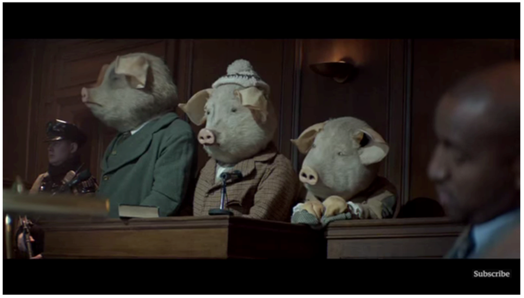 One can only imagine what a study like Priscilla Denby’s would look like in 2016. In 1969 there were only a handful of channels and now there are hundreds. With more commercials and shows than ever before fairy tales have more opportunities than ever to show up on the small screen. In the introduction to “Channeling Wonder”, a book exploring the fairy tale’s role in the age of Peak TV, Pauline Greenhill and Jill Rudy explain, “television seriality works especially well for establishing the horizon of expectation while keying on a fluid relationship of fantasy and reality. Wonder invokes and responds to this fluid relationship, helping to illuminate fairy tale’s persistence in, and even conscription of, new media.” ([], pp. 13–14). Television advertisements are by nature temporary and ethereal; it is impossible to quantify this genre collectively as a whole or even viewing most of them, however, it is still beneficial to examine and catalogue the wonder and storytelling operating within these artifacts when possible. The digital age and the new media it’s brought have created an ideal environment for the fairy tale to adapt. The call Jack Zipes made in “Breaking the Magic Spell” is more relevant than ever as fairy tales find new places in commercials and television programs. According to Zipes, to counter the “corporate inundation of our imagination, the familiar fairy tales must be made strange to us again if we are to respond to the unique images of our own imagination and the possible utopian elements they may contain” ([], p. 118). While Zipes was speaking specifically against mind-warping TV advertisements featuring fairy tales, there are still those rare commercials that genuinely make the tales strange to us again by commenting on the genre or showing us their place in the modern world. To close out this series let’s examine one last commercial that manages to comment on online journalism, social media mobs, police brutality and militarization, privacy rights, conspiracy theories, insurance fraud, and the financial crisis. And the framing mechanism for all of this? The familiar tale of the Three Little Pigs (See Figure 22).