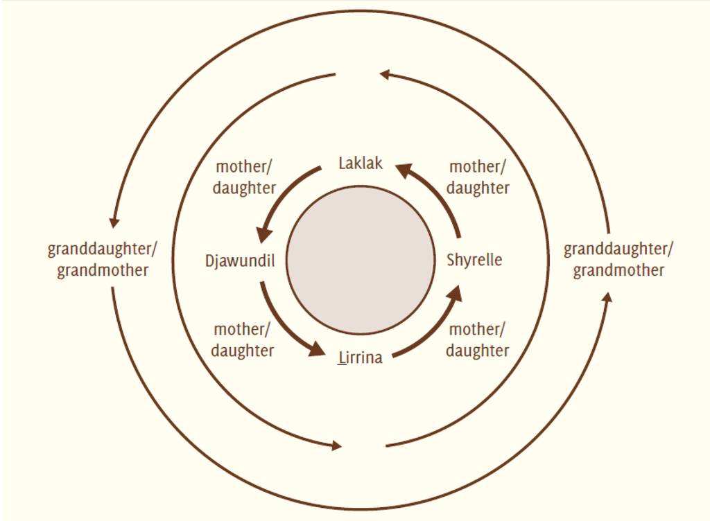 Figure 2. Basic Gurrutu cycle of Laklak and daughters ([1], p. 147).