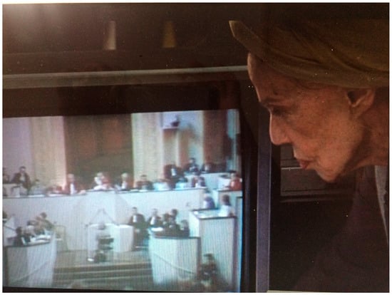 As noted earlier, this archival footage was first made available in 2007, twenty years after the fact, and was used by Gitai in the scene in which the audience is first introduced to the protagonist’s mother, played by the incomparable Jeanne Moreau (see Figure 1).